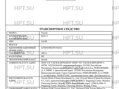 | Предприятие-изготовитель | Toyota Motor (China) Investment Co., Ltd. |