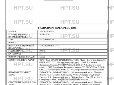 | Предприятие-изготовитель | FAW-VW Co., Ltd |