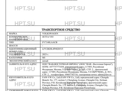 | Коммерческое наименование | JETTA VS5 |