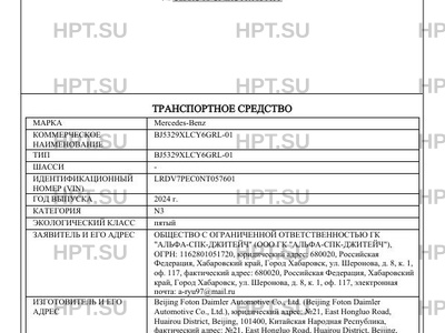 | Предприятие-изготовитель | Beijing Foton Daimler Automotive Co., Ltd. |