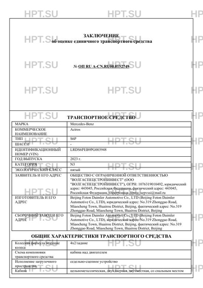 | Категория ТС | N3 |