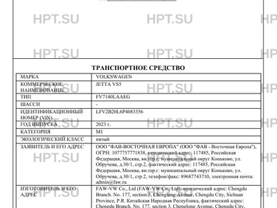 | Коммерческое наименование | JETTA VS5 |