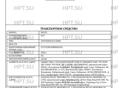 Предприятие-изготовитель JIANGXI ISUZU MOTORS CO., LTD