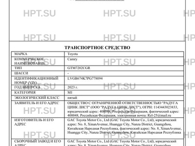| Предприятие-изготовитель | GAC Toyota Motor Co., Ltd |