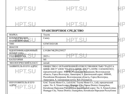 | Коммерческое наименование | Camry |