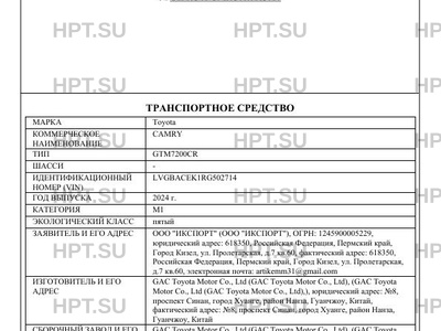 | Предприятие-изготовитель | GAC Toyota Motor Co., Ltd (GAC Toyota Motor Co., Ltd), |