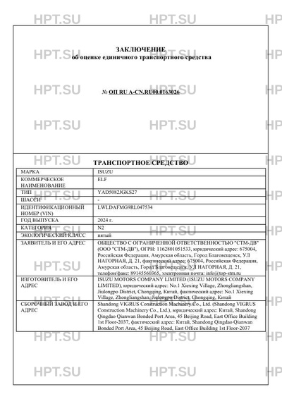 | Марка ТС | ISUZU |