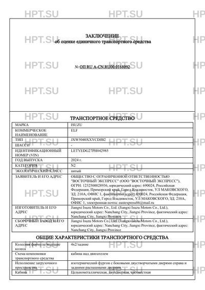 | Номер документа | ОП RU А-CN.RU00.0168092 |