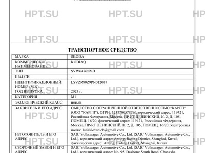 | Марка ТС | SKODA |