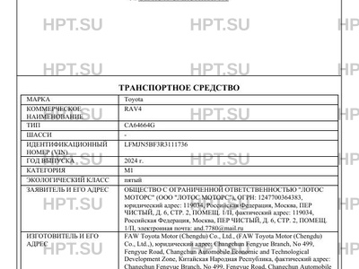 Предприятие-изготовитель FAW Toyota Motor (Chengdu) Co., Ltd.,