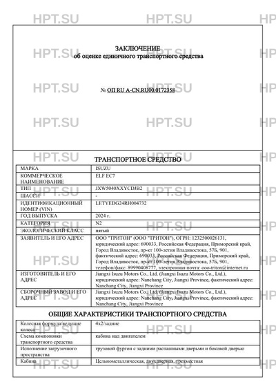 | Марка ТС | ISUZU |