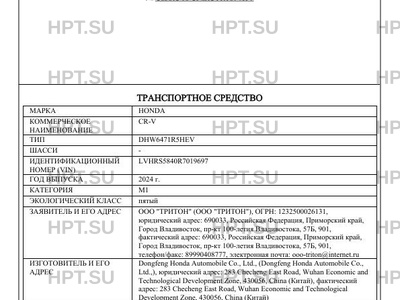 | Коммерческое наименование | CR-V |