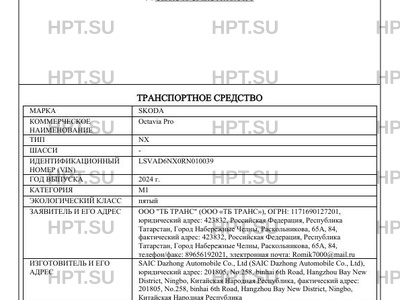 | Марка ТС | SKODA |
