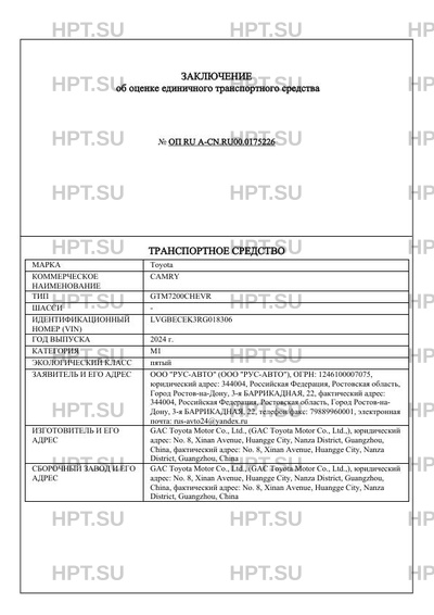 | Предприятие-изготовитель | GAC Toyota Motor Co., Ltd., |