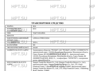 | Марка ТС | KIA |