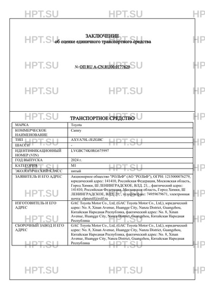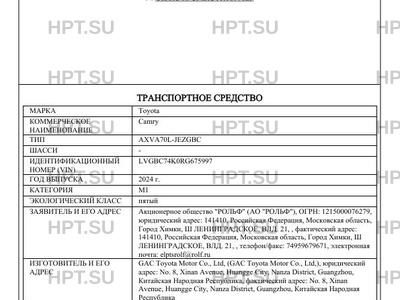 | Предприятие-изготовитель | GAC Toyota Motor Со., Ltd, (GAC Toyota Motor Со., Ltd,), юридический адрес: No. 8, Xinan Avenue, Huangge City, Nanza District, Guangzhou, Китайская Народная Республика, фактический адрес: No. 8, Xinan Avenue, Huangge City, Nanza District, Guangzhou, Китайская Народная Республика |