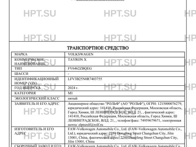 | Марка ТС | VOLKSWAGEN |