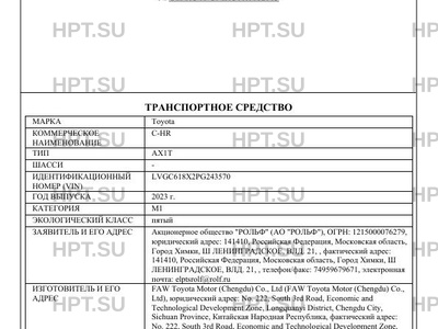 | Коммерческое наименование | C-HR |