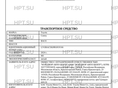 | Марка ТС | Toyota |