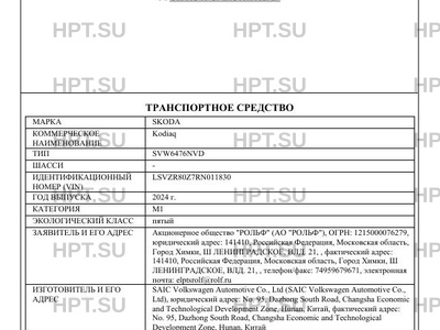 | Марка ТС | SKODA |