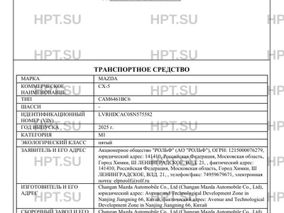 | Предприятие-изготовитель | Changan Mazda Automobile Co., Ltd (Changan Mazda Automobile Co., Ltd), юридический адрес: Avenue and Technological Development Zone in Nanjing Jiangning 66, Китай, фактический адрес: Avenue and Technological Development Zone in Nanjing Jiangning 66, Китай |
