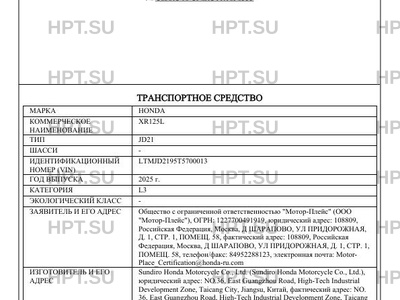 | Предприятие-изготовитель | Sundiro Honda Motorcycle Co., Ltd. (Sundiro Honda Motorcycle Co., Ltd.), юридический адрес: NO.36, East Guangzhou Road, High-Tech Industrial Development Zone, Taicang City, Jiangsu, Китай, фактический адрес: NO. 36, East Guangzhou Road, High-Tech Industrial Development Zone, Taicang City, Jiangsu, Китай |