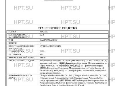 | Предприятие-изготовитель | Changan Mazda Automobile Co., Ltd. (Changan Mazda Automobile Co., Ltd.) |