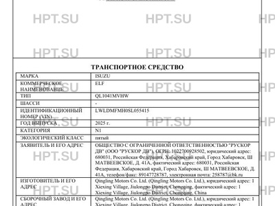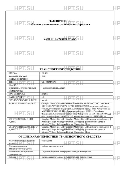 | Марка ТС | ISUZU |