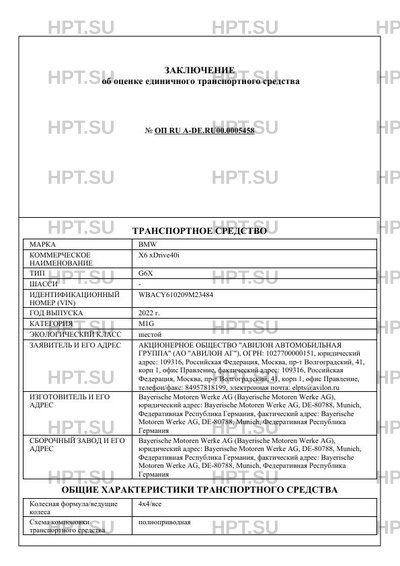 | Коммерческое наименование | X6 xDrive40i |