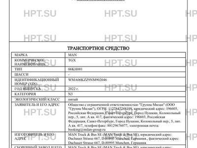 | Марка ТС | MAN |