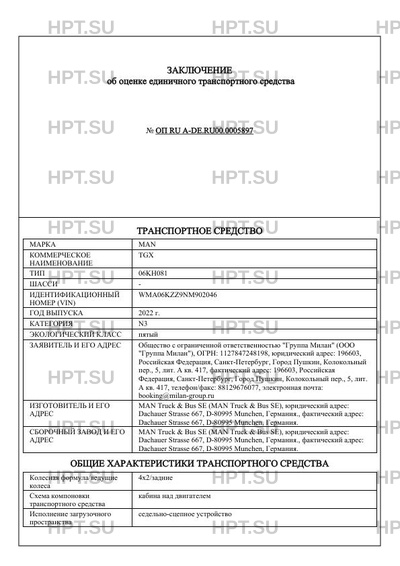 | Категория ТС | N3 |