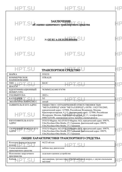 | Марка ТС | IVECO |