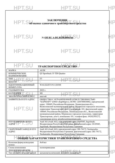 | Коммерческое наименование | Q3 Sportback 35 TDI Quattro |