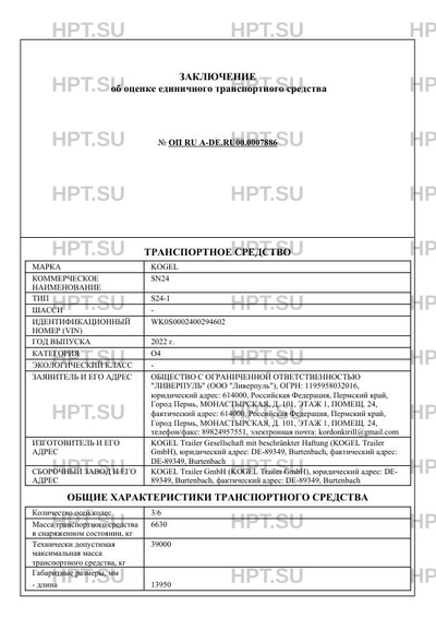 Предприятие-изготовитель | KOGEL Trailer Gesellschaft mit beschränkter Haftung |