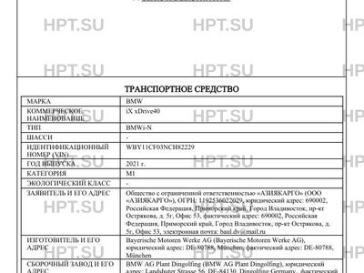 | Тип ТС | BMWi-N |