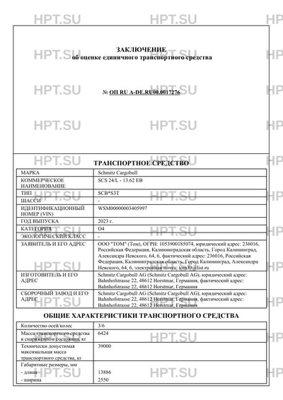 | Марка ТС | Schmitz Cargobull |