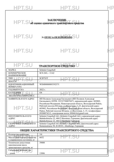 | Марка ТС | Schmitz Cargobull |