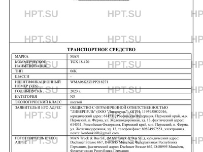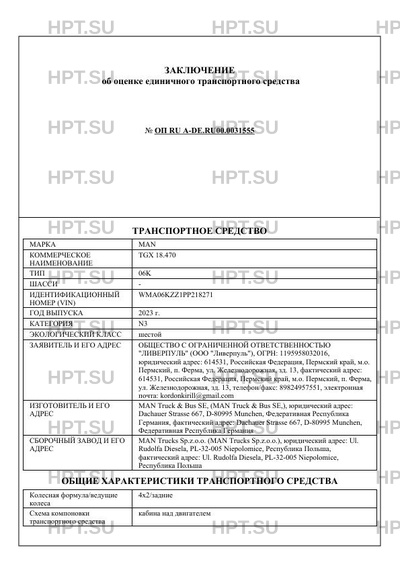 | Предприятие-изготовитель | MAN Truck & Bus SE, (MAN Truck & Bus SE,), юридический адрес: Dachauer Strasse 667, D-80995 Munchen, Федеративная Республика Германия, фактический адрес: Dachauer Strasse 667, D-80995 Munchen, Федеративная Республика Германия |
