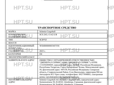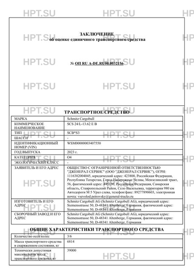 Предприятие-изготовитель Schmitz Cargobull AG (Schmitz Cargobull AG), юридический адрес: Siemensstrasse 50, D-48341 Altenberge, Германия, фактический адрес: Siemensstrasse 50, D-48341 Altenberge, Германия