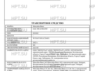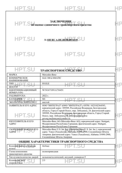 | Коммерческое наименование | GLE 300 d 4MATIC |