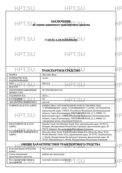 | Категория ТС | N3 |
