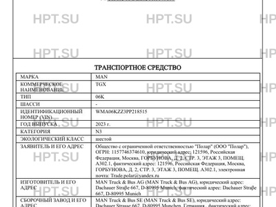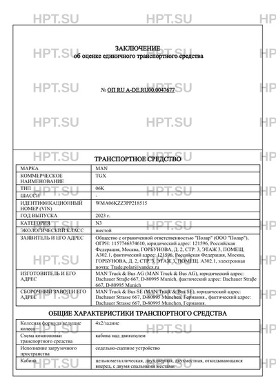 | Категория ТС | N3 |