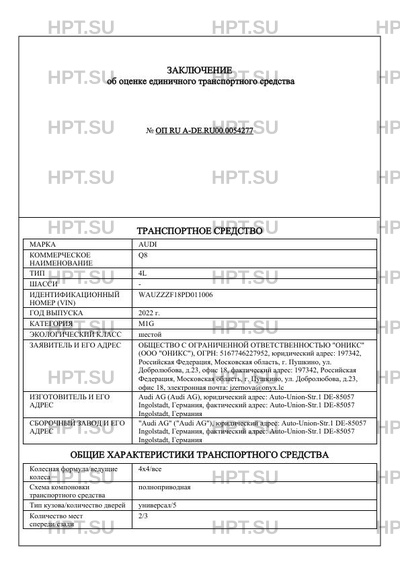 | Марка ТС | AUDI |