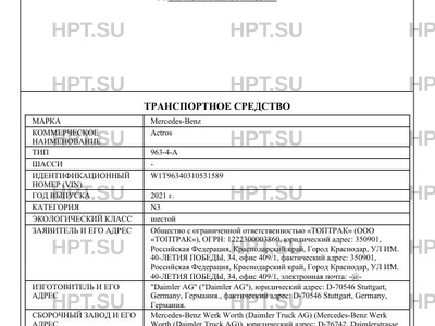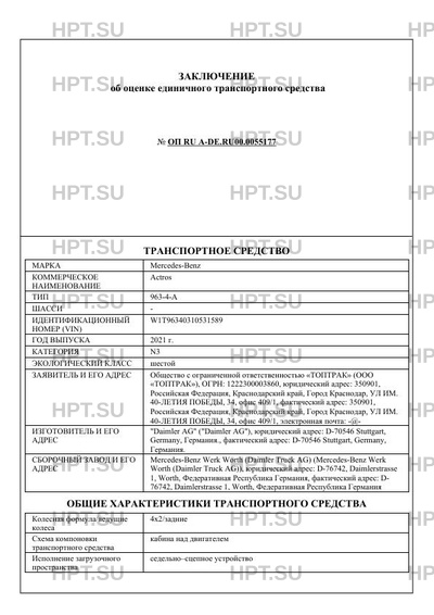 | Категория ТС | N3 |
