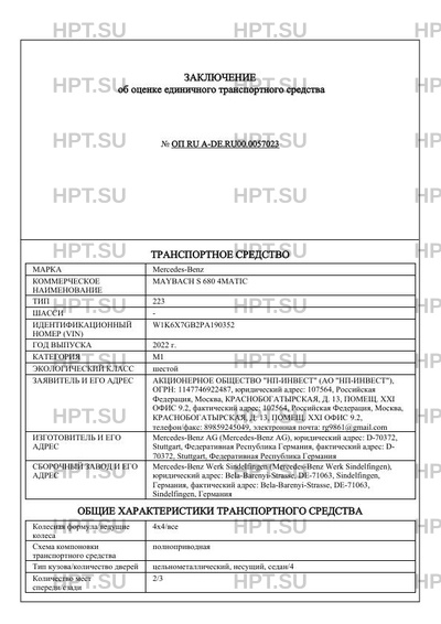 | Коммерческое наименование | MAYBACH S 680 4MATIC |