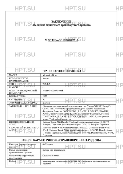 | Категория ТС | N3 |