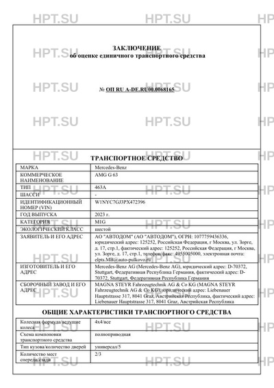 | Коммерческое наименование | AMG G 63 |