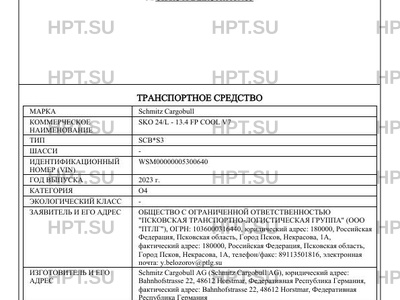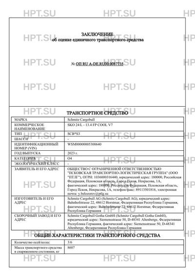 | Марка ТС | Schmitz Cargobull |
