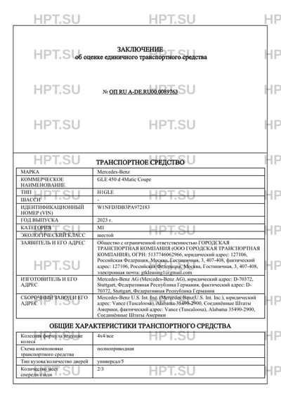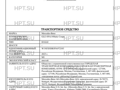 | Коммерческое наименование | GLE 450 d 4Matic Coupe |