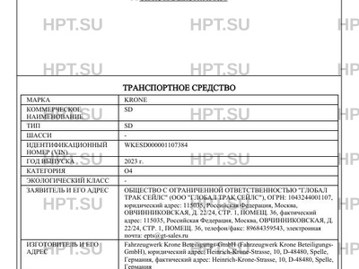 | Предприятие-изготовитель | Fahrzeugwerk Krone Beteiligungs-GmbH |